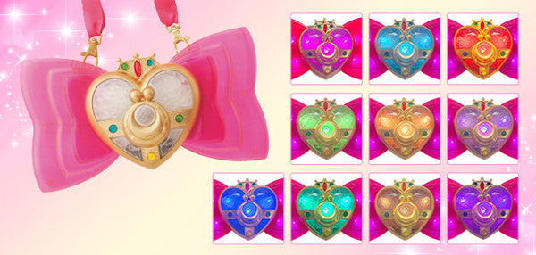 The Universal Heart Compact was used for the Sailor Moon attraction in Universal Studios Japan. It would light up and react to the events of the Sailor Moon ride. By itself, the compact can still light up with the colors representing each of the ten Sailor Scouts. A pink strap is included so you can wear it around your neck.