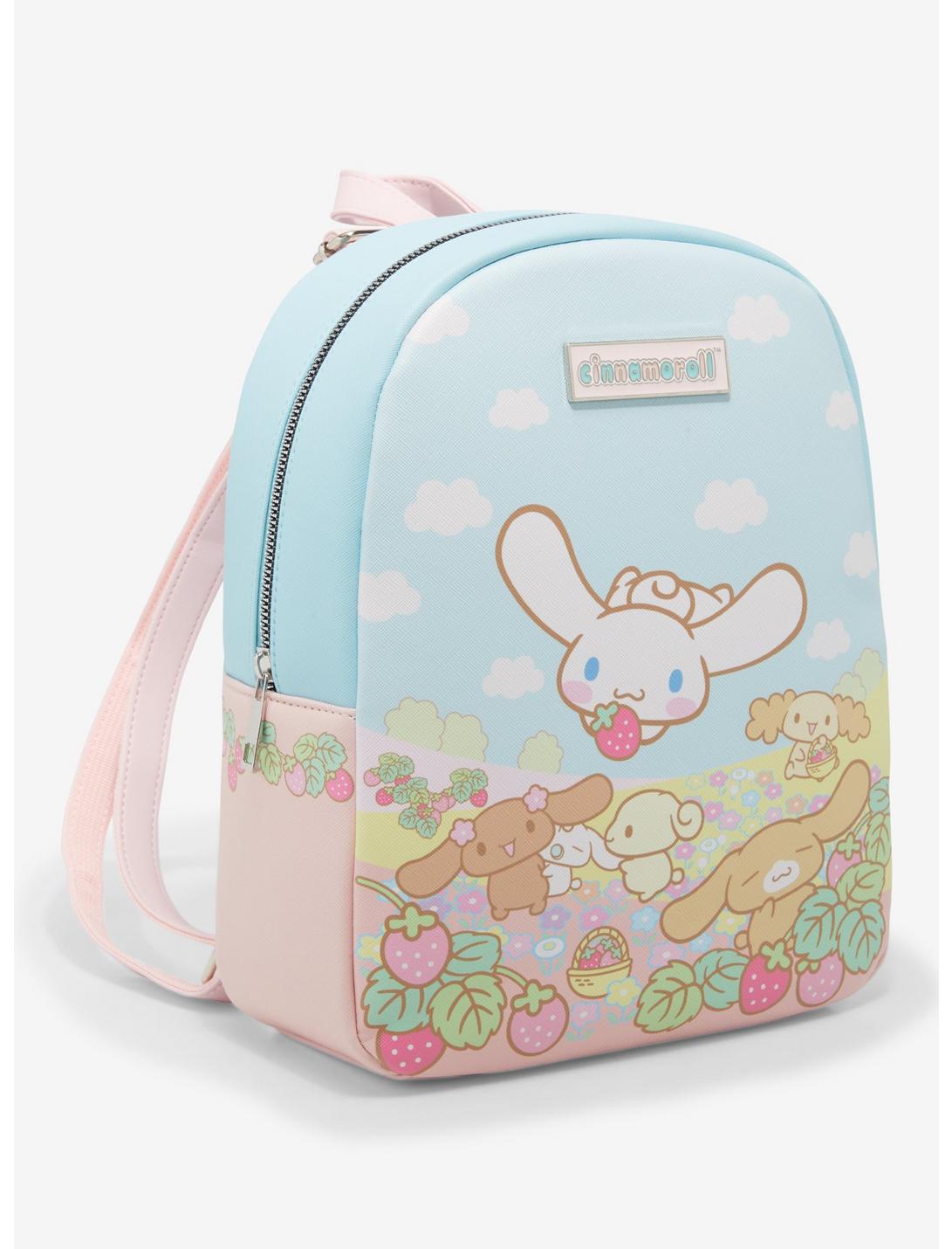 Meeting up with Cinnamoroll and his fam for a picnic? Pack all of your sweet essentials into this mini backpack! The front features Cinnamoroll with his family, surrounded by pastel strawberries and flowers. Comes with adjustable straps and silver-tone straps.