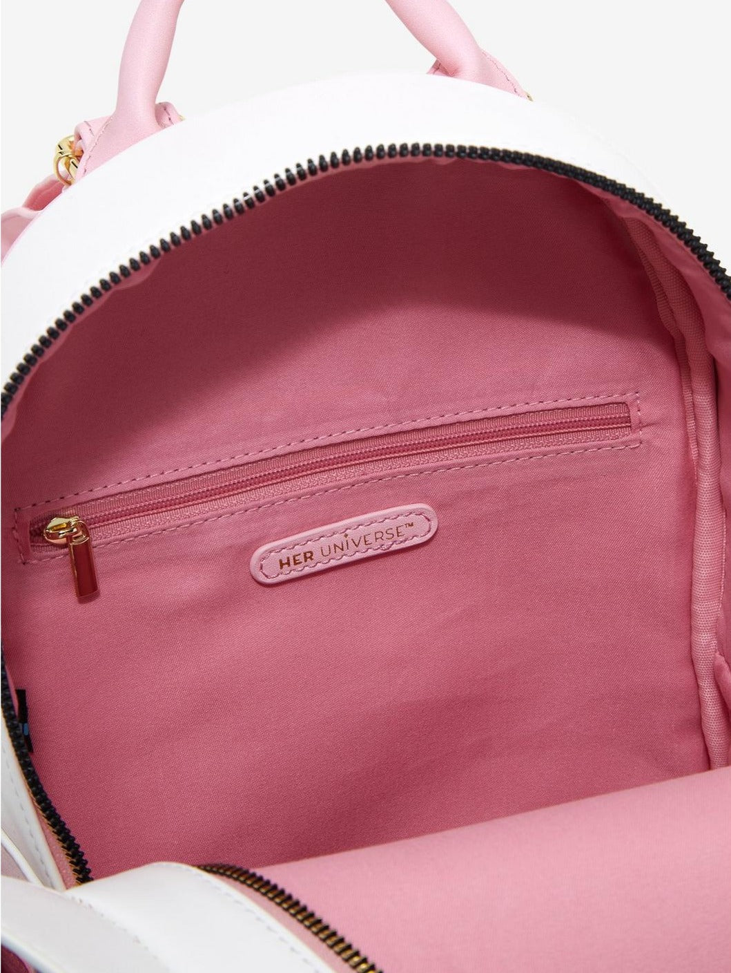 Keep your essentials secured the sweetest way! Your favorite Sanrio pup is here to add a berry cute touch to your accessories. This mini backpack features Cinnamoroll on the front, with 3D appliqué ears and strawberry hat. The front zipper pocket is also a strawberry! Comes with interior zipper pocket and side pockets.