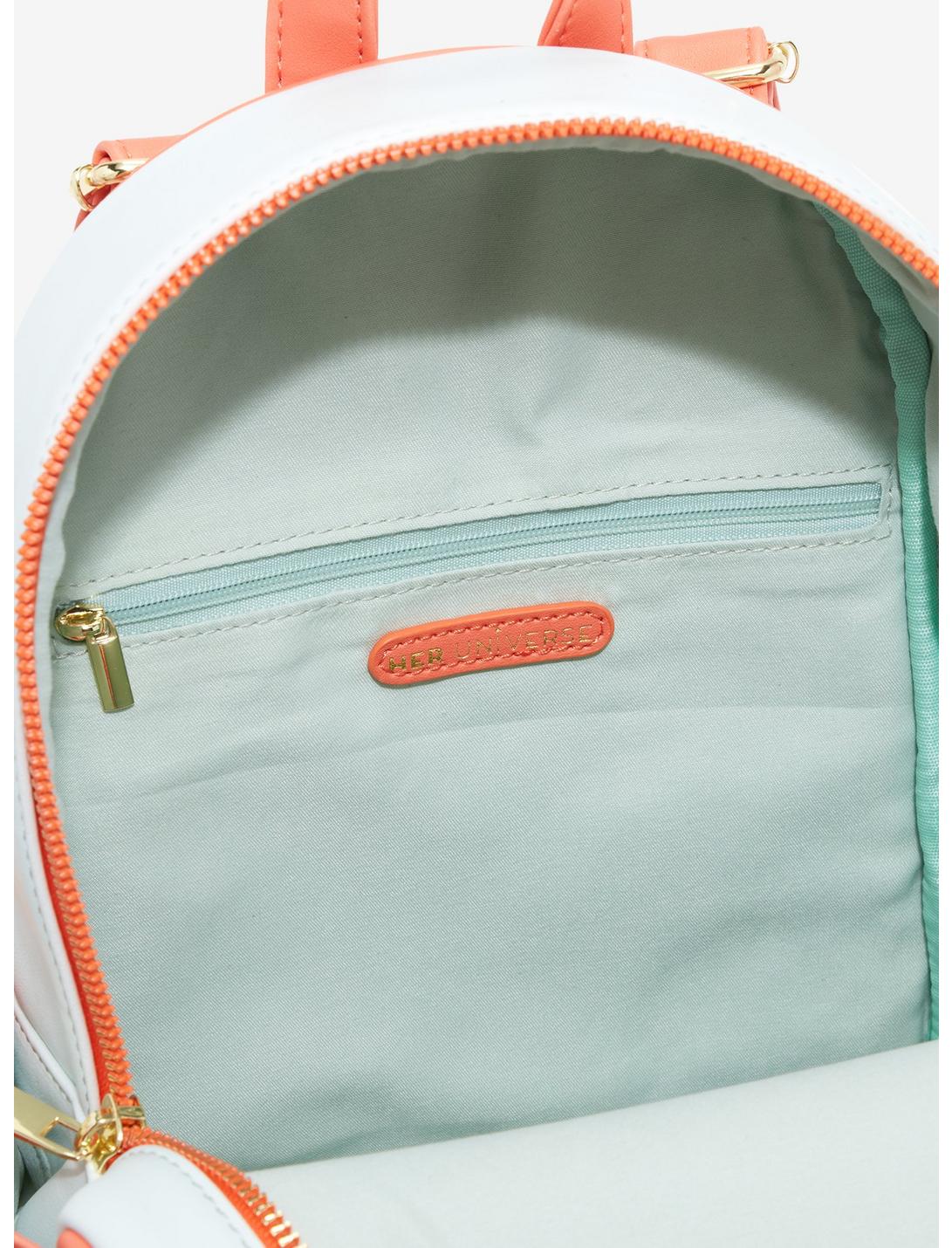 Pack all of your mush-have essentials into this mini backpack! Hello Kitty and her friends are featured on this figural mini backpack, designed with a mushroom house appliqué on the front with a magnetic door detail that reveals a patch of My Melody. Hello Kitty, Cinnamoroll and the Little Twin Stars are also in mushroom-themed outfits. Peep the back to see Pompompurin with a tray of goodies! Comes with side pockets and interior zipper pocket.