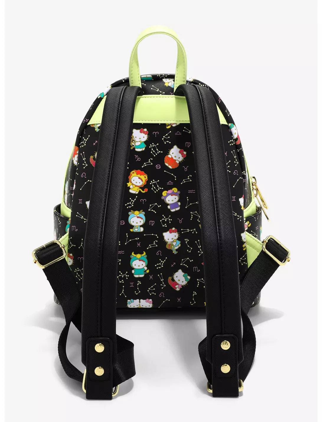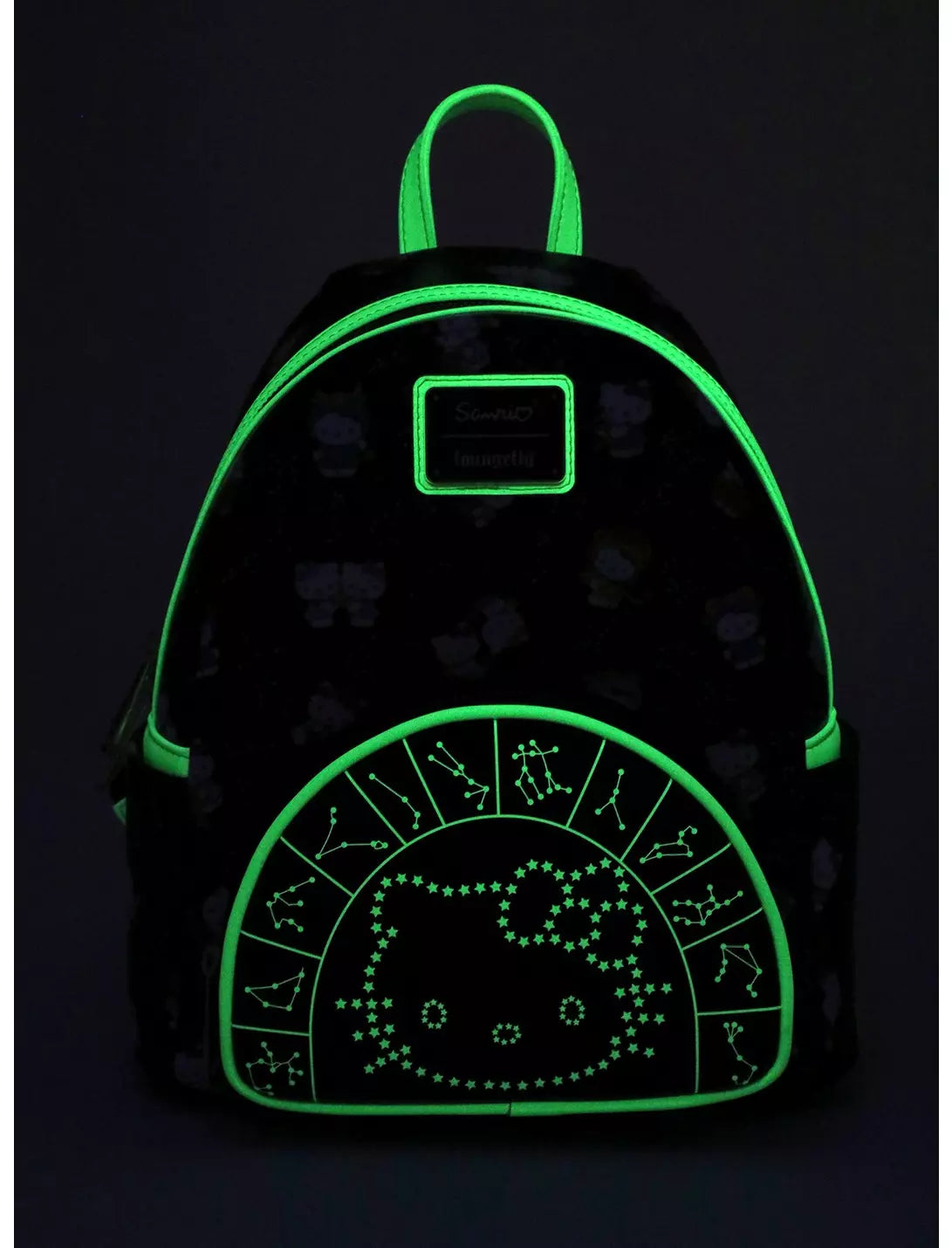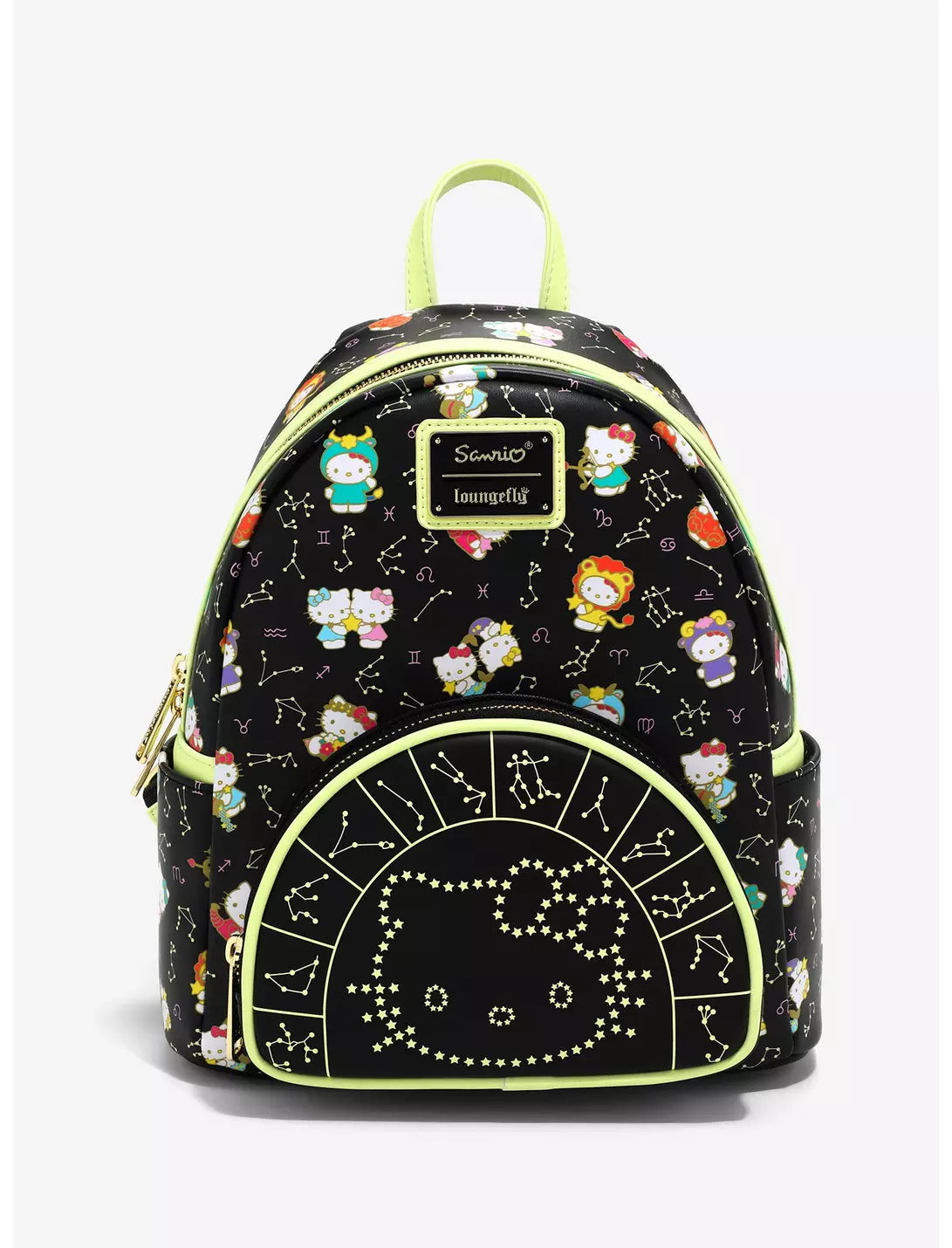 Let Hello Kitty help track your constellation with this zodiac sign backpack! The glow-in-the-dark front pocket shows off each star sign surrounding Hello Kitty's star-formed face, while the body features an allover print of the famous cat in varying representations, including Gemini, Aquarius, and Leo. It brightens up any look, shelf, or display case with Sanrio style!