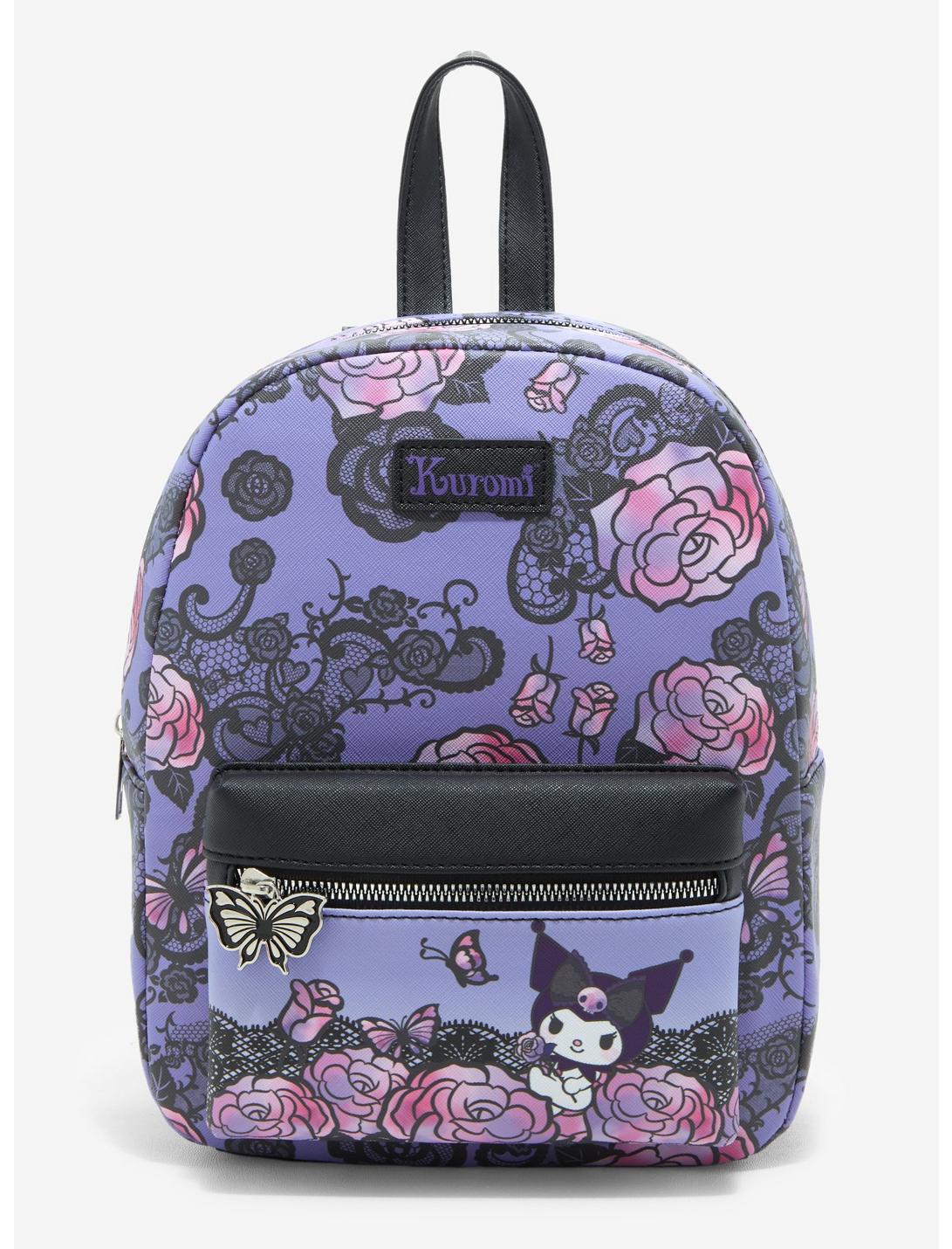 Take a moment to stop and smell the roses with your Sanrio bestie! Get ready for spring in an edgy way with this super cute mini backpack, featuring Kuromi with rose and lace designs. Comes with adjustable straps, an interior zipper pocket and top carrying handle. Plus, a butterfly zipper pull.