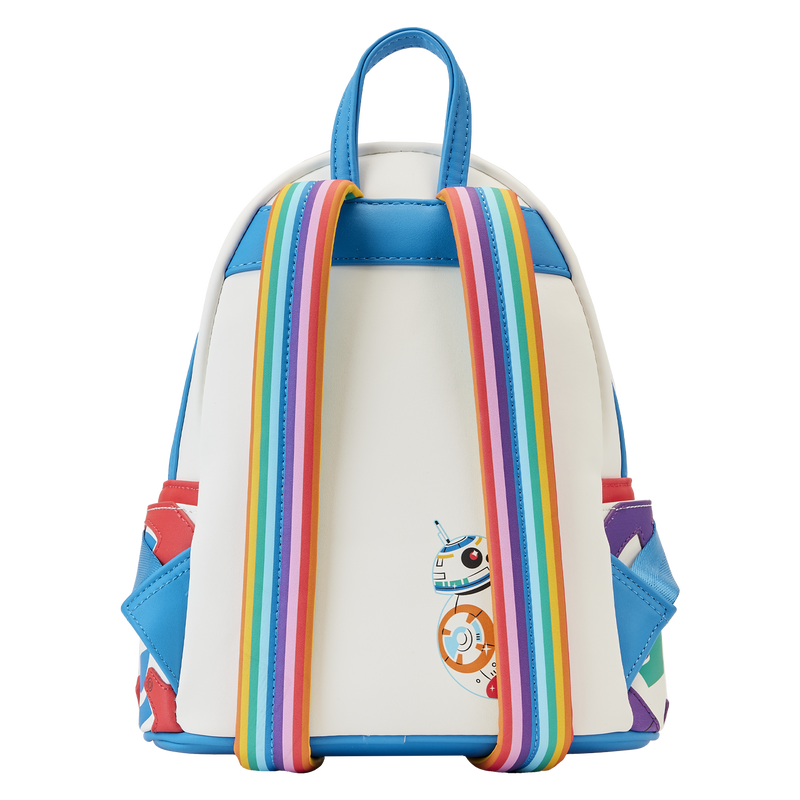This astromech is rolling out a brand-new look! The exclusive Loungefly Star Wars BB-8™ Pride Mini Backpack! Features bold, bright colors across the droid’s iconic features. Bringing the loveable companion to life, this mini backpack gives shape to BB-8’s iconic form with multicolored markings across his face and body. On the back, BB-8 makes an encore appearance near the bag’s rainbow-striped shoulder straps.