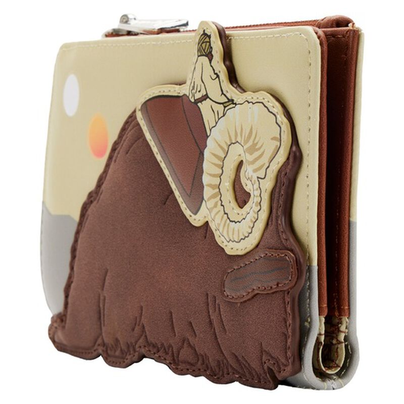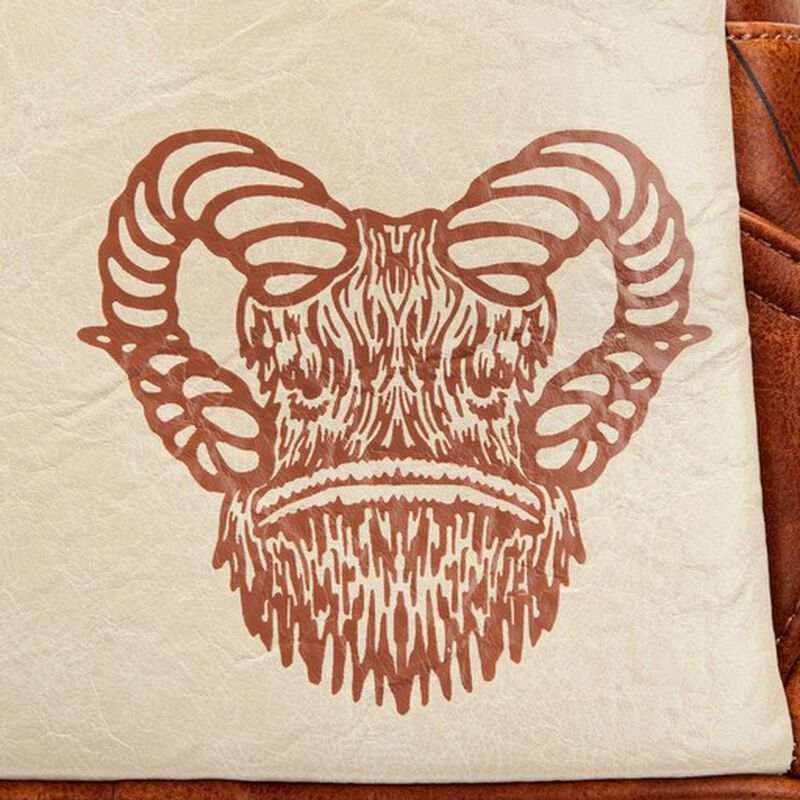 Travel the sandy dunes of Tatooine and you may find yourself face to face with the planet’s native, nomadic inhabitants. This Tusken Raider Cosplay Mini Backpack portrays a warrior tribe member. On the front, distressed canvas material and metal rivet details form the traditional mask of the Sand People. Turn the bag around and you’ll find a tribute to the Tusken Raider’s bantha.