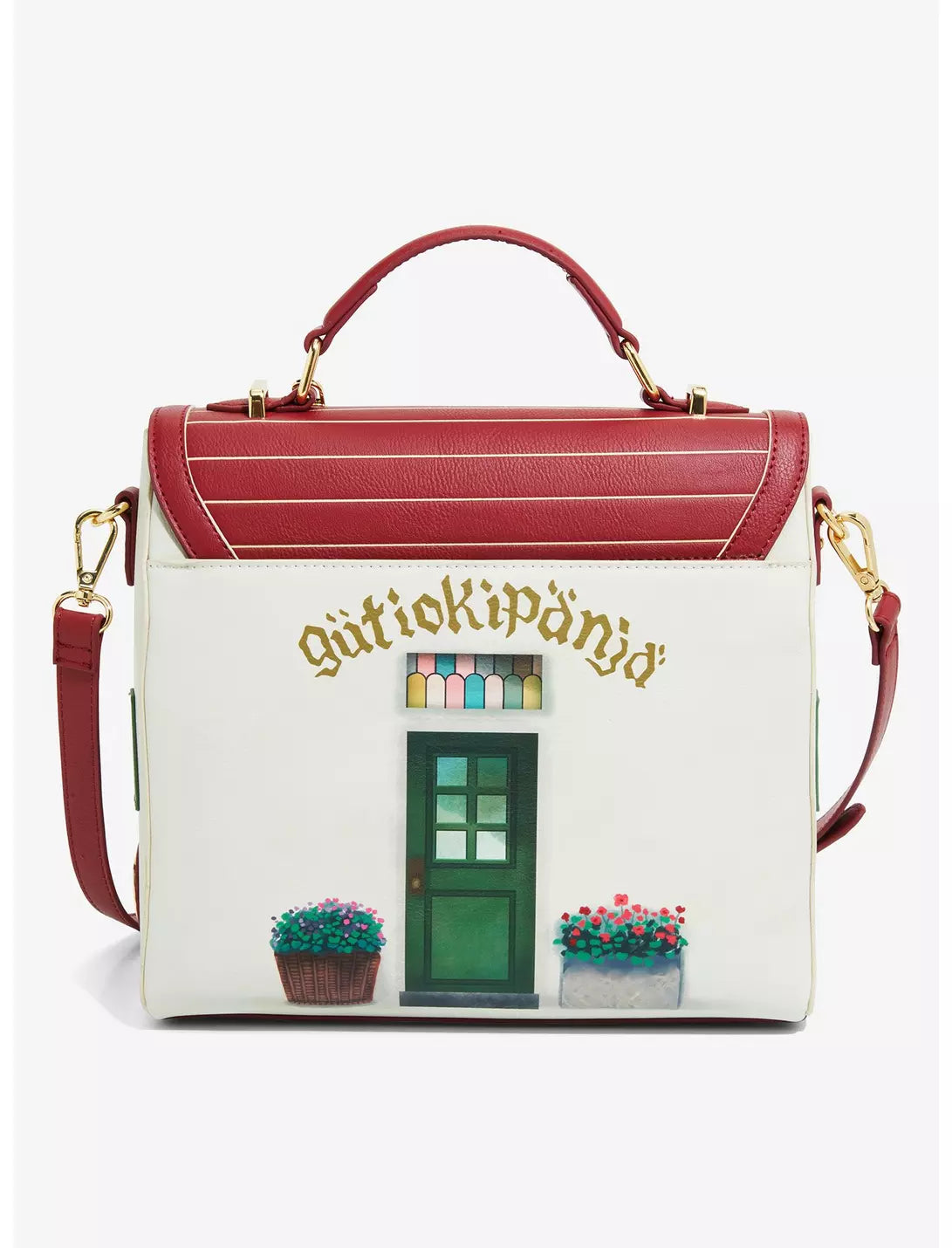 Fuel up before your next delivery with this Kiki's Delivery Service-inspired bag! Featuring an applique of the bakery window on the front, the sides include window appliques with a design of the bakery's door on the back. With a baguette twist closure and scalloped edge on the top flap, this bag also includes a removable Kiki keychain, top handle, and a removable crossbody strap, perfect for carrying your essentials while out on delivery.