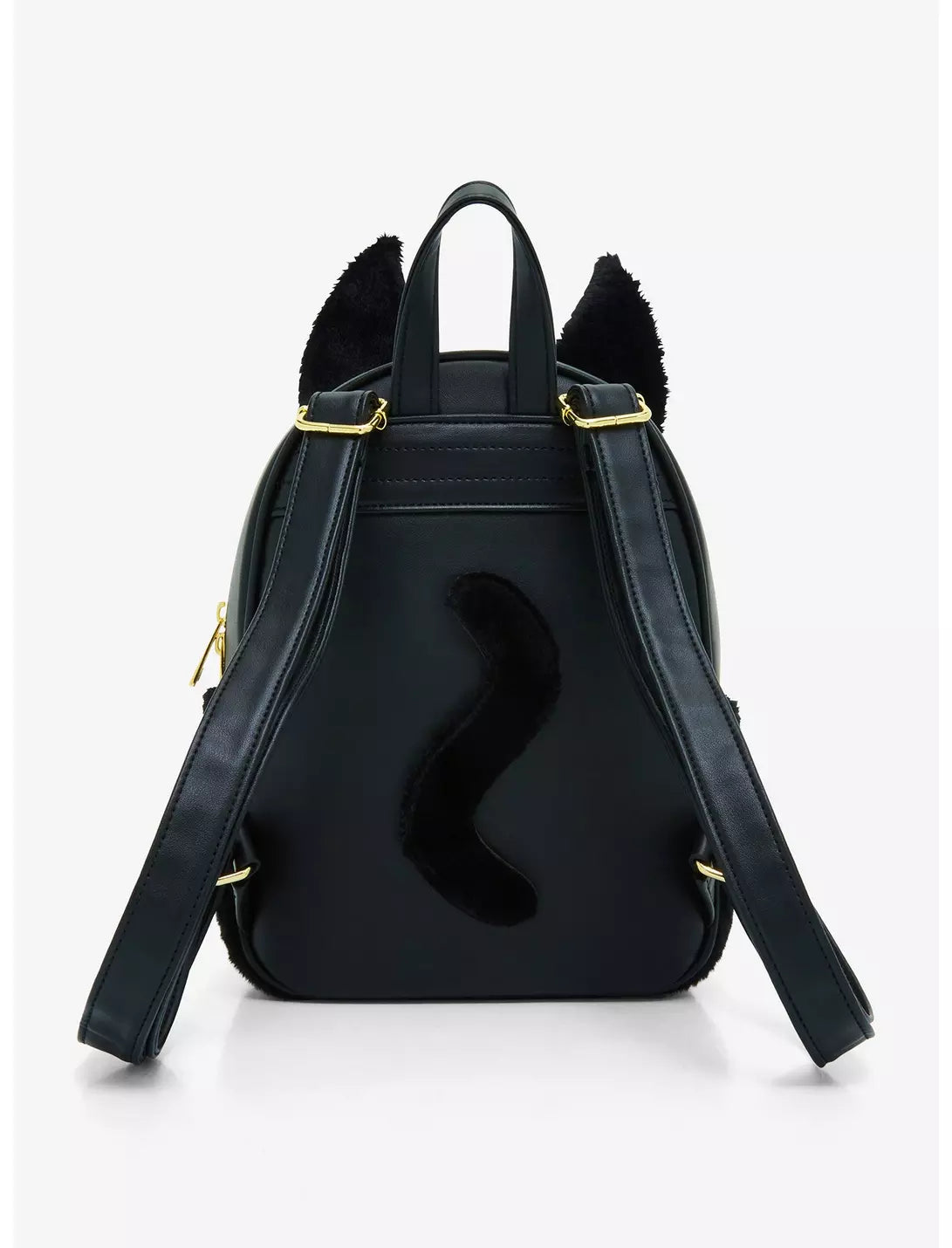 Bring Jiji along on your deliveries with this mini backpack from Kiki's Delivery Service! Featuring an allover fuzzy design, with a red bow applique on the front zipper pocket and a Lily charm, Jiji's face embroidered above and 3D ear detailing up top. Comes with adjustable straps, interior zipper pocket, side pockets and top carrying handle.