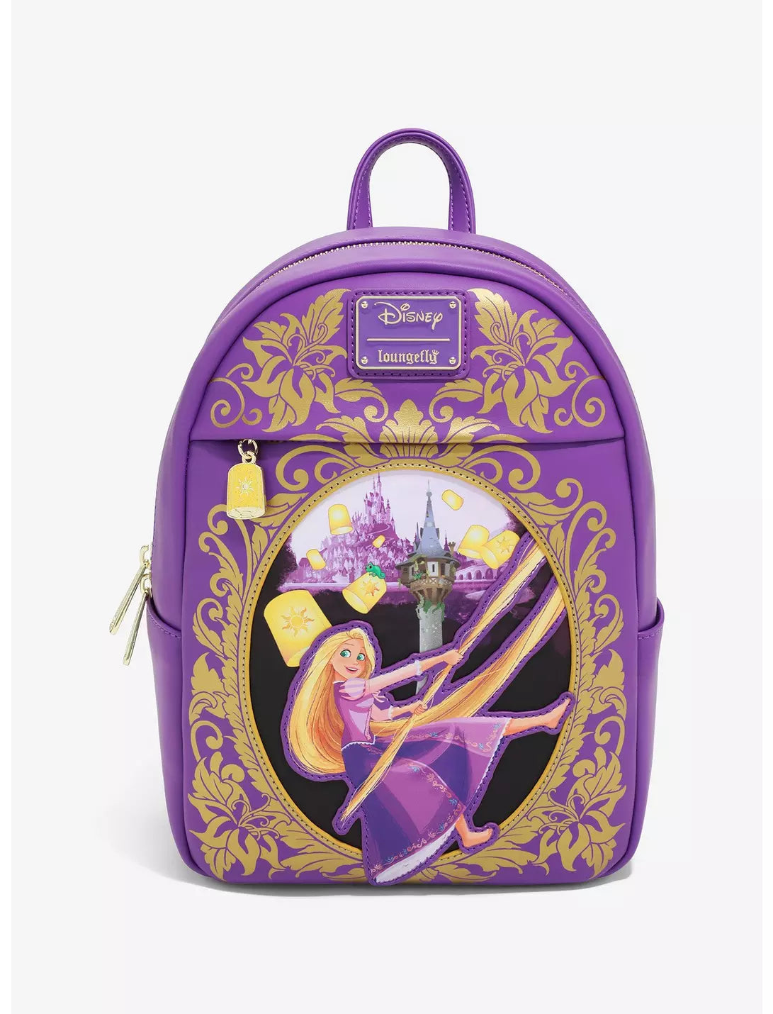 Best. Day. Ever! This Tangled-inspired mini backpack features an applique of Rapunzel taking flight amid her tower and Corona, embellished by gorgeous gold detailing. A lantern-shaped zipper is a pleasant nod to her roots, while the back sneaks in an embossed print of the Disney Princess along "Paint Your Story" lettering. Take it for a spin at the Disney Parks, afternoons out, and beyond!