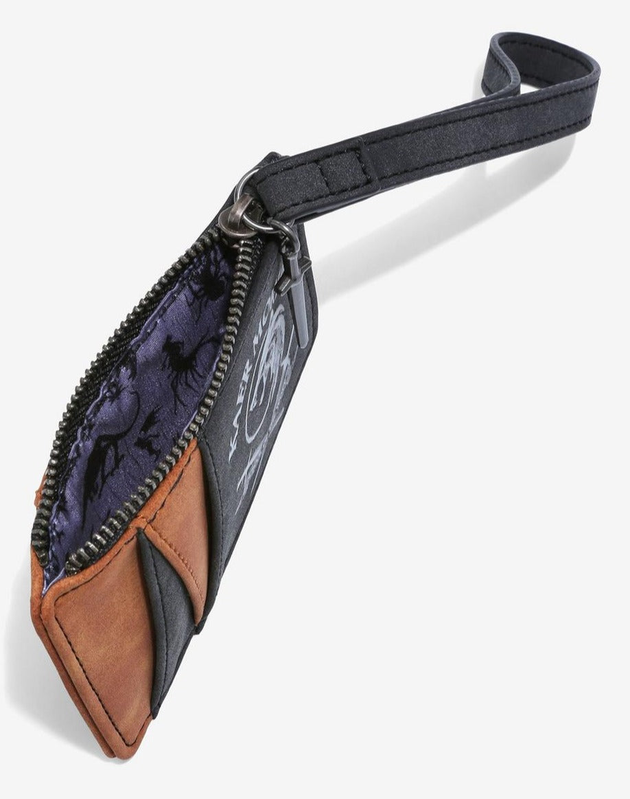 Show everyone that you trained at the Kaer Morhen School of the Wolf while you store, organize, and protect your cards and more with this Witcher-inspired cardholder! Featuring dual-toned exterior, multiple card slots, top zippered pocket (with wrist strap!), now you can take a piece of the kingdom of Kaedwen with you wherever you go when you add this piece to your fantasy accessory collection!
