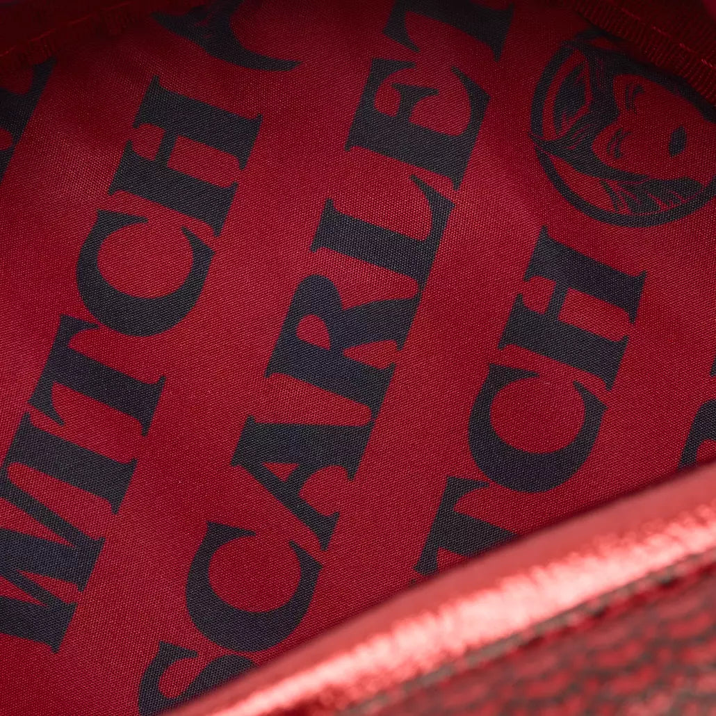 You won't require Wanda Maximoff's telekinetic abilities to move objects around when you can move them around in this Scarlet Witch backpack from Loungefly. The metallic simulated leather design is inspired by the Avenger's costume, notably her distinctive pointed headpiece.